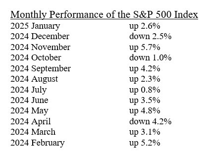 “I am skeptical of just looking at the 12-month PCE inflation number when we know the first quarter of 2024 had a big bump up in inflation.  If inflation numbers continue to be lower as we expect in 2025, the lower numbers of first quarter 2025 will replace the higher inflation number of first quarter 2024.  If so, the 12-month inflation by April will show a plunging inflation number from the current level.”